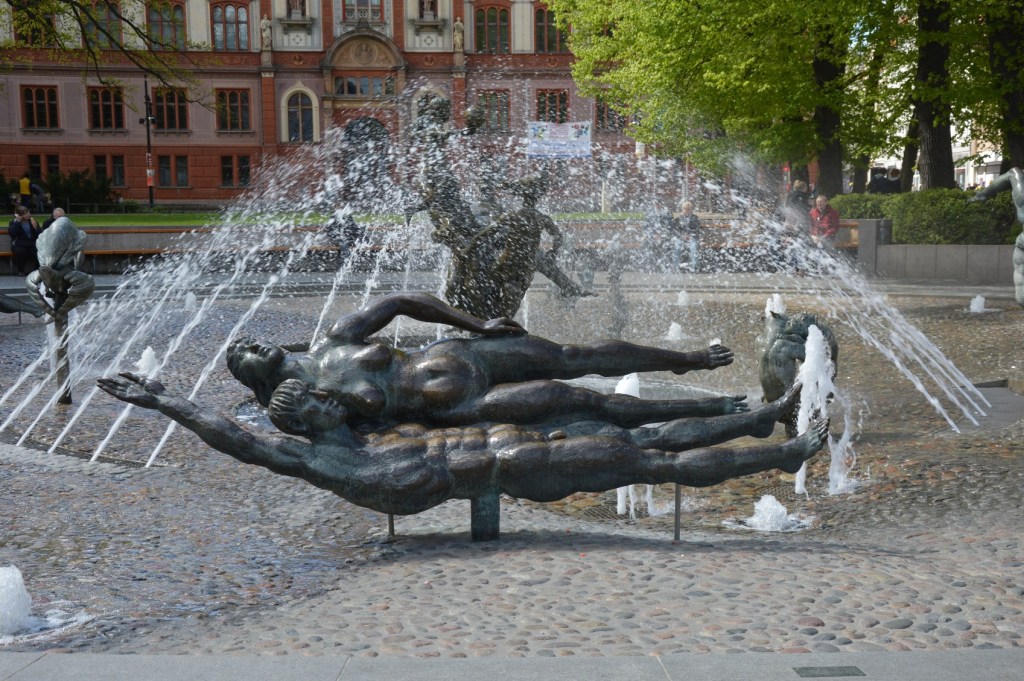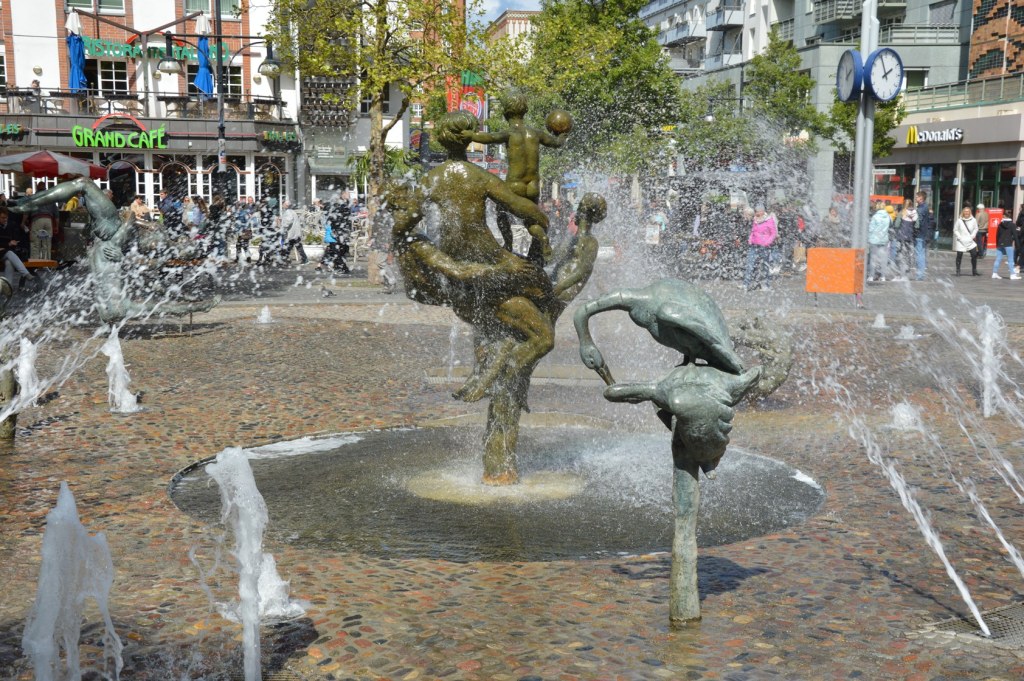 Oh ja… den Spießern der Stadt kräuselte sich damals sowas von der Nacken. Sie bekamen regelrechte Schnappatmung, wenn sie sich das Kunstwerk ansahen. Schon damals nannte man ihn deshalb „Pornobrunnen“ :D. Heute wie damals bietet er ein Wasserspass für die Kinder und für die Hunde an heißen Tagen eine wohltunende Abkühlung.