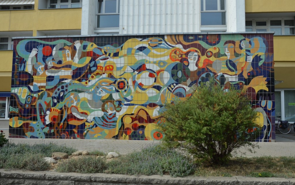26. Juni 2019 buecherfreund Wandmosaik von Annedore Policek, 1973 Magdeburg, JakobstraßeIm Vordergrund die typische DDR-Blumenbeeteinfassung aus Betonplatten. Ähnliche Beiträge