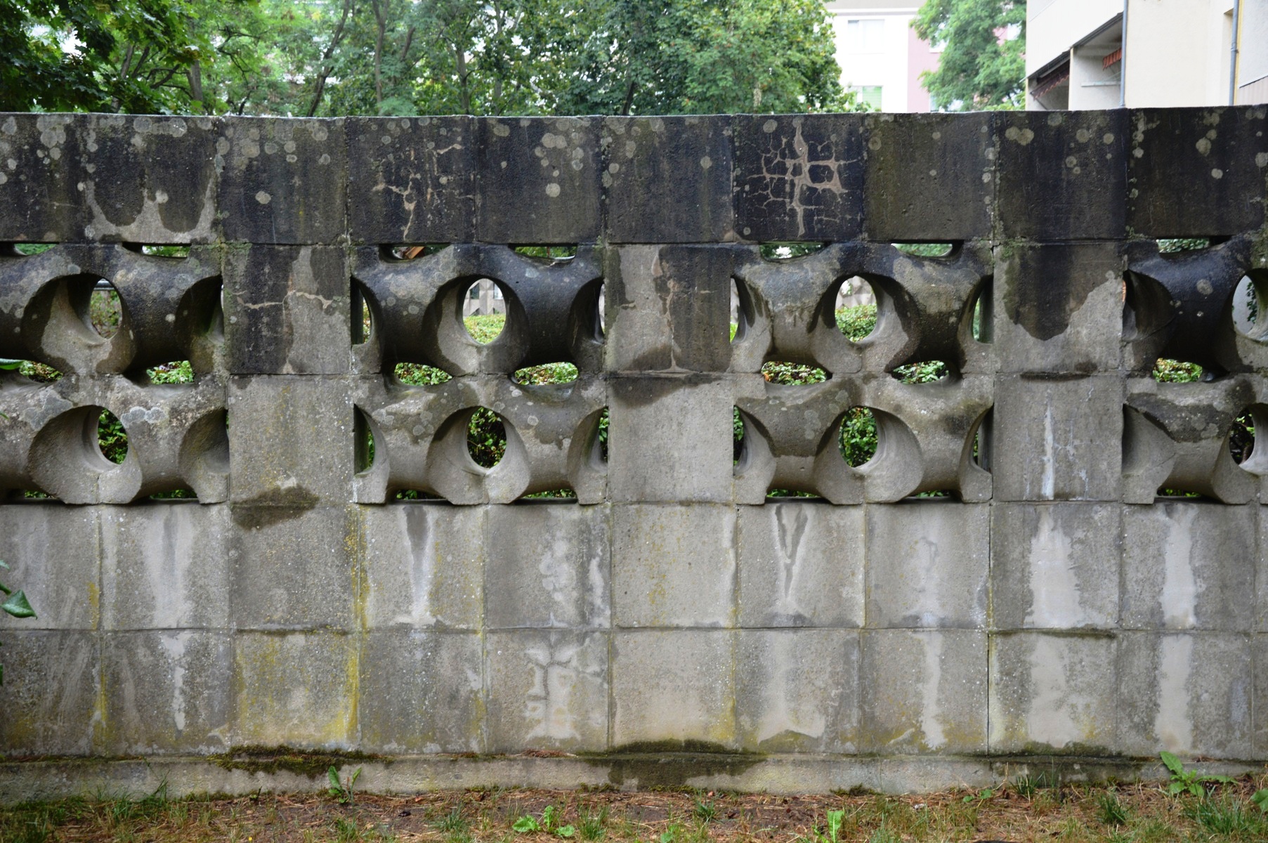 Schwedt, Rosa-Luxemburg-StraßeDie gleiche Mauer seitlich fotografiert. Schade, das niemand auf die Idee kommt die Mauer mit einem Hochdruckreiniger zu säubern.