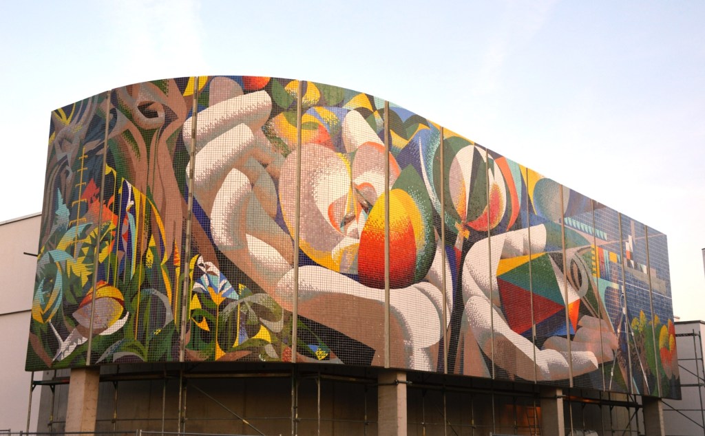 Letzte Woche war ich in Erfurt unterwegs. Welch eine Freude, das monumentale, denkmalgeschützte Mosaik von Josep Renau wird endlich wieder aufgebaut. Zur Zeit fehlen noch die Mosaiksteine um die Fugen zu schließen. Ich habe mit mehreren Anwohnern gesprochen, die das Kunstwerk noch aus der DDR kannten. Alle waren erfreut, dass es jetzt wieder das Wohngebiet schmücken wird.