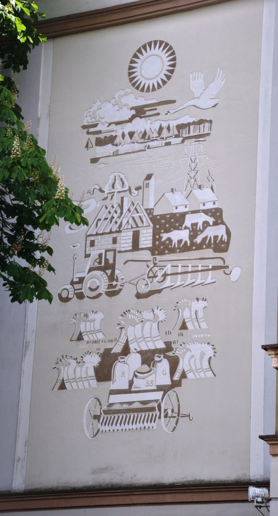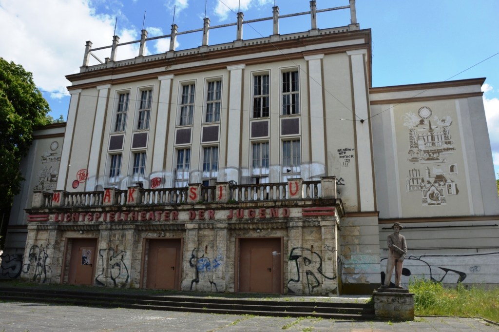 Die Kunstwerke befinden sich an der Eingangsseite des „Lichtspieltheaters der Jugend“ in Frankfurt Oder. Es ist eigentlich ein sehr schönes Gebäude, dessen Wiederaufbau und Umnutzung 1955 abgeschlossen wurde.