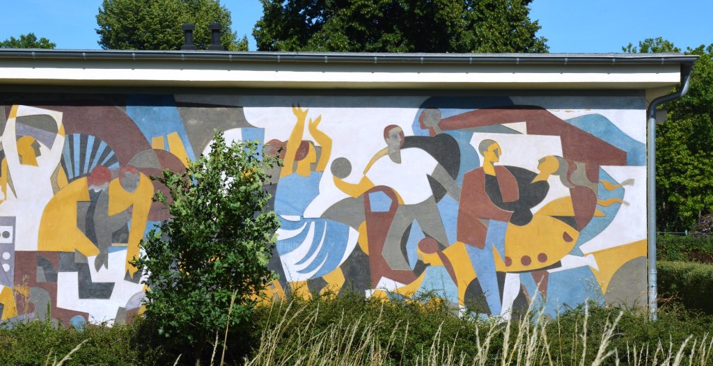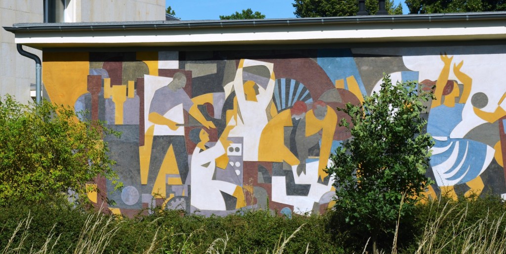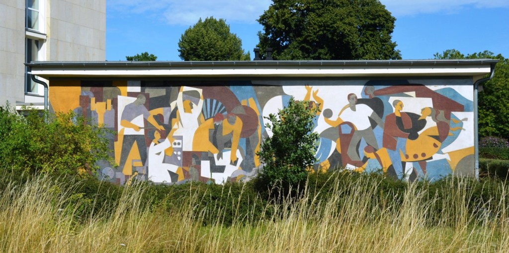 Die Motive Arbeiten, Sport und Erholung symbolisieren die politischen Ziele der Deutschen Demokratischen Republik.