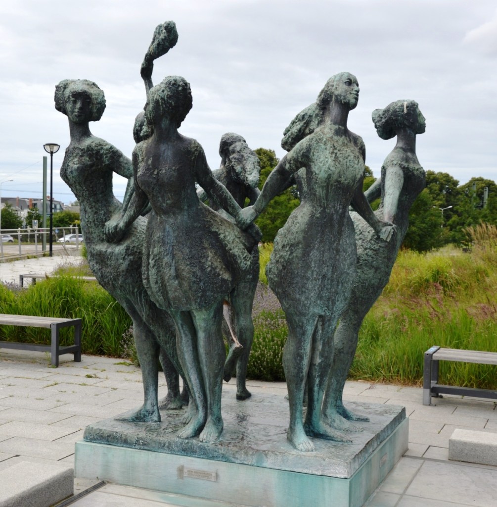 Dieser Brunnen symbolisiert die Friedenspolitik der DDR. Die sieben Schwestern stehen für die sieben Anrainerstaaten der Ostsee.
