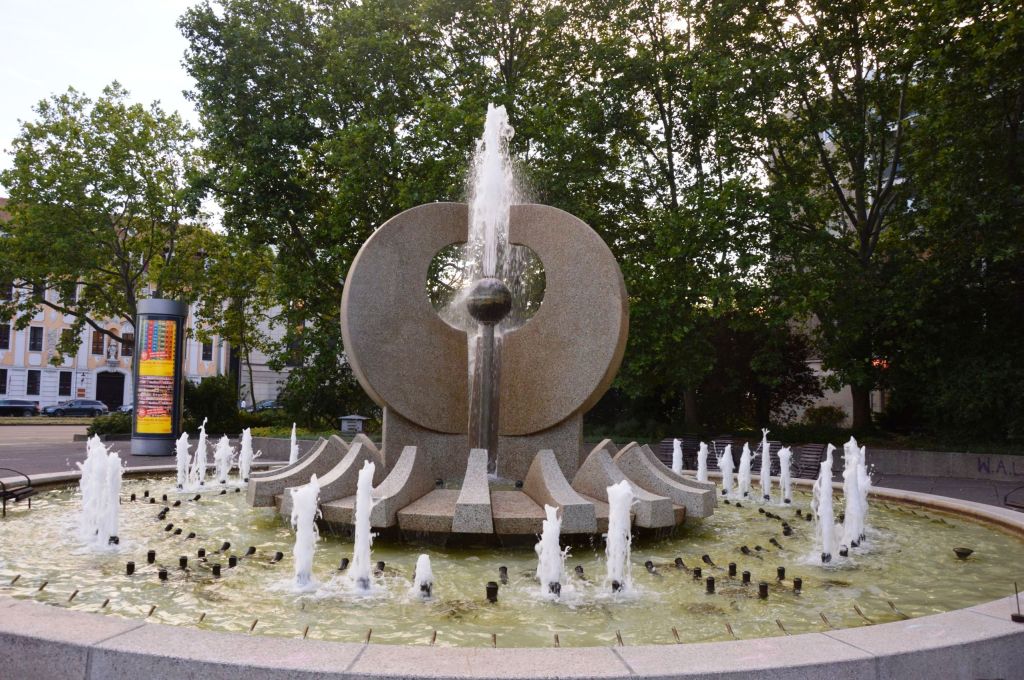 Auf der gegenüberliegenden Seite befindet sich noch ein ähnlicher Brunnen vom gleichen Künstler, der aber wegen Baufälligkeit gesperrt ist. Das ist sehr schade, da man an so einem Brunnen wunderbar entspannen kann.