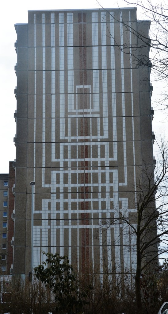 Im Erdgeschoß wurden kleine Ladenflächen zur Versorgung der Bevölkerung geschaffen, wie man am rechten Bildrand sehen kann.