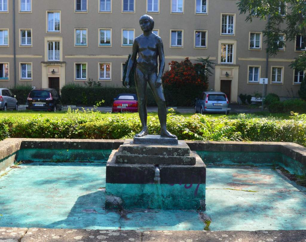 Auf einem Innenhof, Marchlewski-Ring, heute „Am Brunnenring“ befinden sich auf einer Sichtachse zwei schöne Springbrunnen mit Bronzefiguren.
