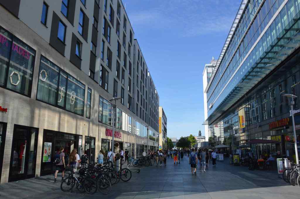 Es ist jedoch kaum möglich ein brauchbares Foto von diesem Kunstwerk zu erstellen, da die großzügig konzipierte Prager Straße sich nach der totalen Kommerzialisierung in eine ausdruckslose Straßenschlucht aus Glas und Werbung verwandelt hat.