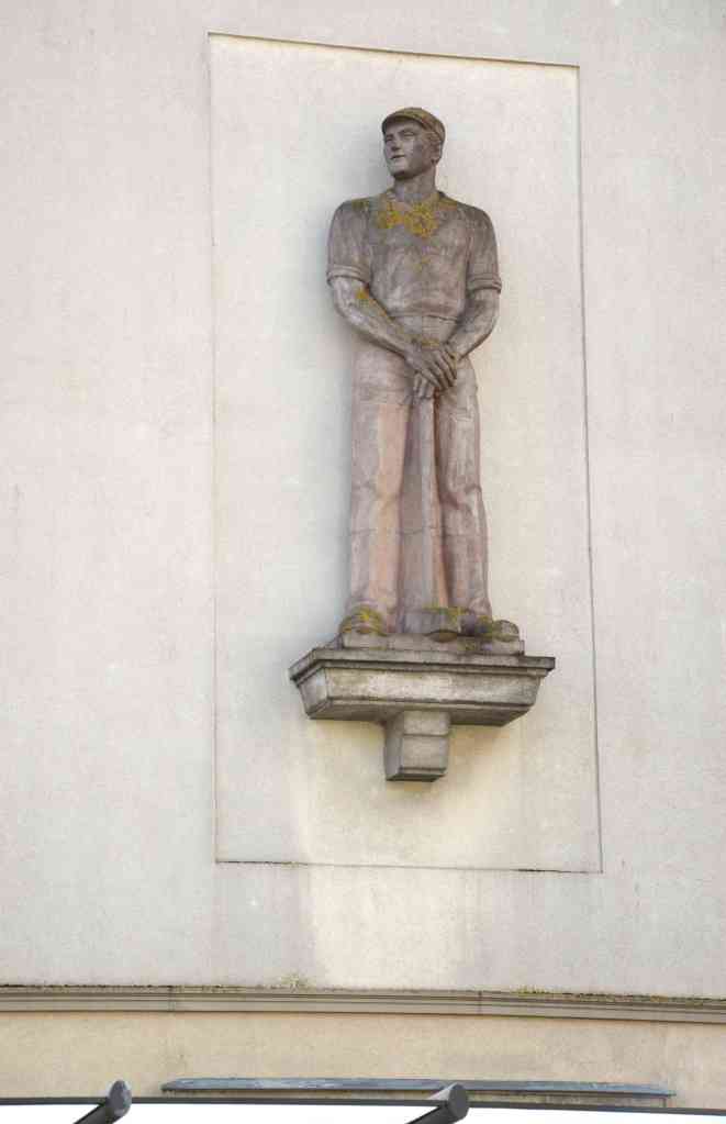 Das 2,50 m hohe Arbeiterstandbild an der Hausfassade Bruno-Tesch-Straße in Wismar wurde im Zeitraum 1958 – 1962 aus Beton hergestellt. Über den Künstler ist nichts bekannt. Es handelte sich um eine Spende des Verbandes Bildender Künstler der DDR an die Stadt Wismar für das neue Wohngebiet in Wendorf, das für die Werftarbeiter errichtet wurde.