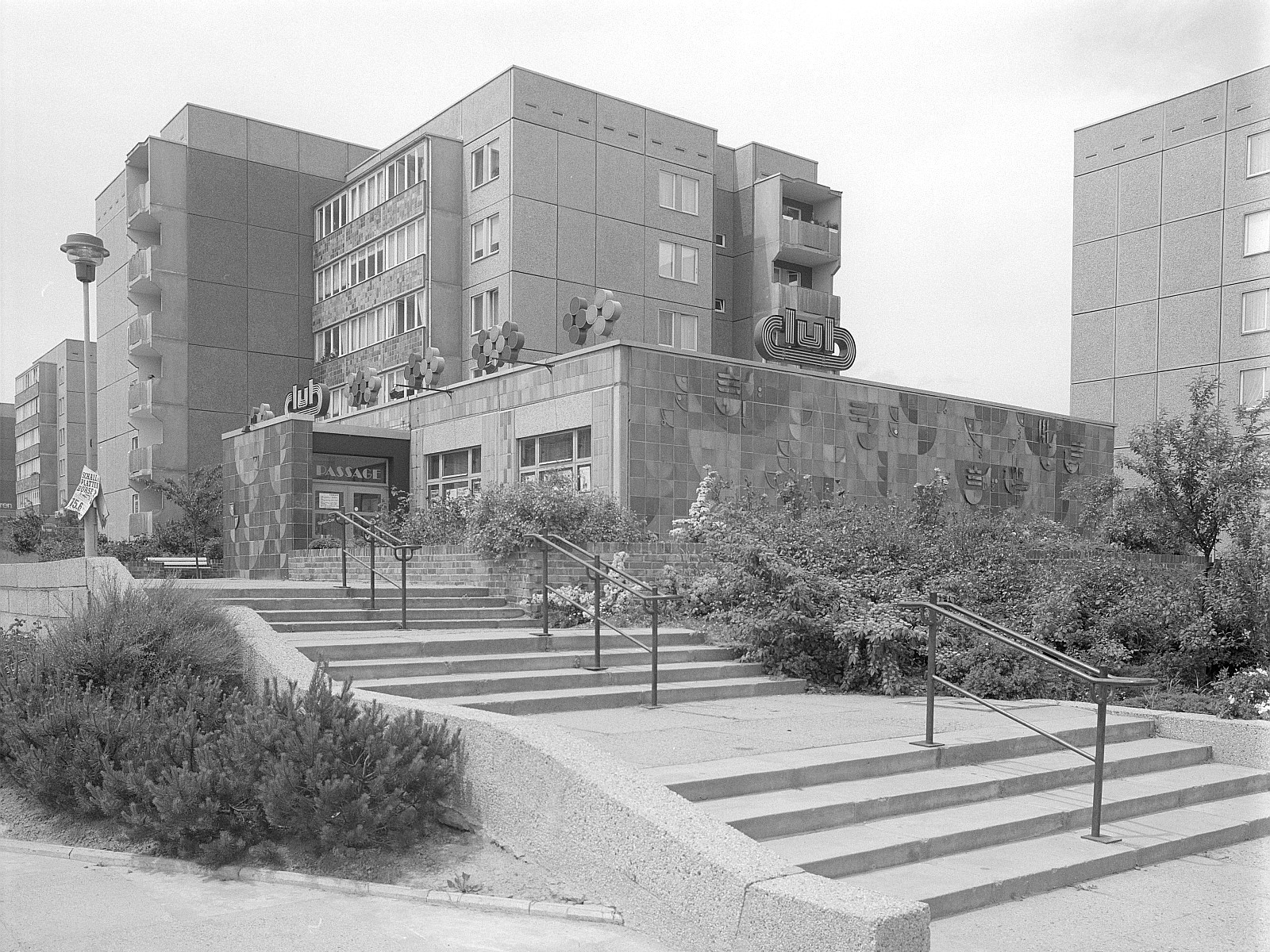 Der Eingangsbereich ist heute abgerissen und durch die typische BRD-Gartencenterarchitektur ersetzt worden. Alle Fenster sind mit Plakaten bepflastert, also zeitgenössische Architektur und Kultur.